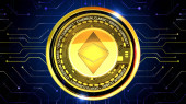Monety złote ethereum na tle kod binarny i ci elektronicznej