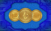 Zdjęcie "Symbole wirtualne monety bitcoin i ethereum. Crypto currenc" może być wykorzystywane do celów osobistych i komercyjnych zgodnie z warunkami zakupionej licencji Royalty-free. Obraz jest dostępny do pobrania w jakości wysokiej rozdzielczości do 5760x3840.