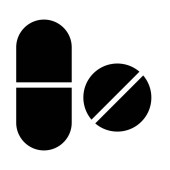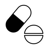 Ilustracja wektorowa ikony w postaci medycznych tabletki i pigułki dla aplikacji, witryny, ponowne wprowadzenie beznes, infografiki na białym tle