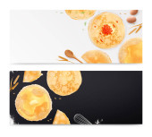 Ilustracja Pizzeria ulotki wektor tle wektor Pizza menu Tablica kreskówka tła ze świeżych składników. Dwa poziome banery z tekstem składników na podłoże drewniane i tablica.