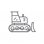 Przemysłowa maszyna ciągnika płaskiej linii ilustracja, wektor koncepcja na białym tle ikona