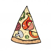 Plasterek pizza capricciosa. Widok z góry. Grawerowanie Vintage wektor