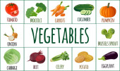 Zestaw warzyw. Ekologiczne wegetariańskie zdrowe jedzenie na białym tle. Wektor.