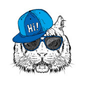Zdjęcie "Ładny kotek w czapkę z kolcami i okulary. Ilustracja wektorowa pocztówka lub plakat. Śmieszne kot. Zwierzę w ubrania." może być wykorzystywane do celów osobistych i komercyjnych zgodnie z warunkami zakupionej licencji Royalty-free. Obraz jest dostępny do pobrania w jakości wysokiej rozdzielczości do 5760x3840.