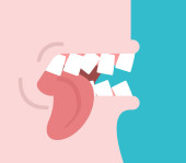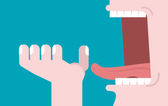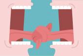 Bite kamienia. Gryźć granitu. Zepsute zęby. Otwarte usta i kamienia. Ve