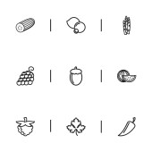 Zestaw 12 ikon edycji naczyń. Zawiera symbole, takie jak nektarynka, marchew, migdałów i więcej. Mogą być używane dla sieci Web, mobilnych, interfejsu użytkownika i Infographic Design.