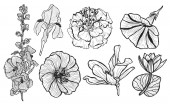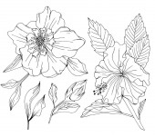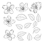 Zestaw z hibiskusa chiński ręcznie rysować szkic wektor.