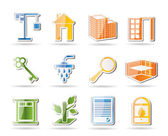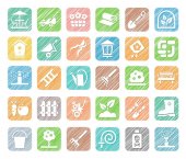 Urządzanie terenów zieleni, ikony, kolorowy, płaski, wektor.