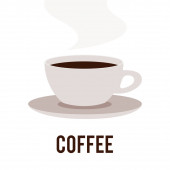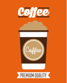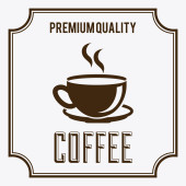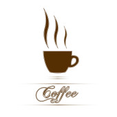 Kubek świeżej gorącej kawy z zapachem. Wektor etykiety na rozmycie cof