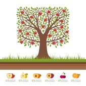 Ogród warzywny. Ekologiczne i zdrowe jedzenie. Świeże warzywa w polu. Banner z warzyw. Płaski, ilustracji wektorowych.
