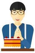 Szczęśliwy chłopiec kaukaski, stojący wśród mnóstwo słodyczy.