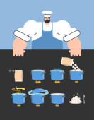 Ciasta. Szef kuchni i cukiernik. Baker w pracy. Ilustracja wektorowa