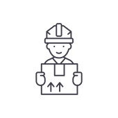 inżynier, przemysł wektor linii ikona, znak, ilustracja na tle, edytowalne obrysy