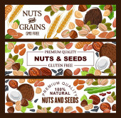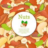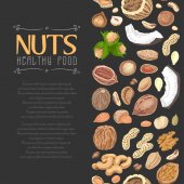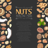 Karty z jedzenie orzechów, pecan i gałki muszkatołowej, hazel