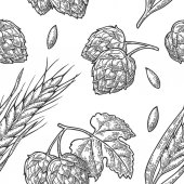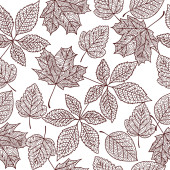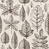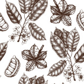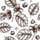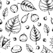 Jednolity wzór liści, Żołądź, kasztan i nasion. Grawerowanie vintage wektor