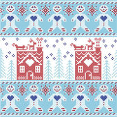 Boże Narodzenie eleganckie skandynawskie, styl Nordycki zima szwy, wzór tym, śnieżynka, serce, renifer, sanie, piernika, Choinka, prezent, śnieg w kolorze czerwonym, zielony w ozdobnej ramki