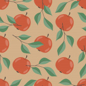 Wzór z jabłkami w kuchni. Czerwone, żółte i zielone jabłka na gałęzi. Owoców. Żywności. Ręcznie rysowane.