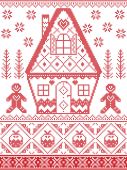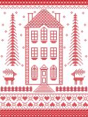 Eleganckie skandynawskie Boże Narodzenie, styl Nordycki zima szwy, wzór tym, śnieżynka, serce, szwedzki styl piernika, Choinka, prezent, śnieg, robin, śnieżynka, gwiazda w kolorze czerwonym, niebieski