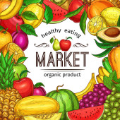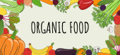 Owoce i warzywa tła. Ekologiczne i zdrowe jedzenie. Płaski, ilustracji wektorowych.
