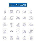 Zdjęcie "Ilustracja jedzenie restauracja, cienka linia ikon, liniowych płaskich znaków wektorowych symboli, zarys zestaw piktogramy, edytowalne obrysy" może być wykorzystywane do celów osobistych i komercyjnych zgodnie z warunkami zakupionej licencji Royalty-free. Obraz jest dostępny do pobrania w jakości wysokiej rozdzielczości do 5760x3840.