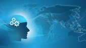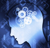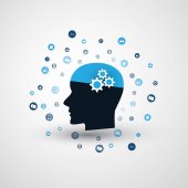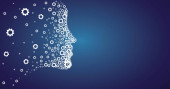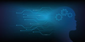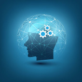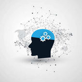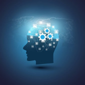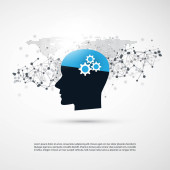 Uczenie maszynowe, sztucznej inteligencji i koncepcja projektowania sieci z ziemskiej, koła zębate wewnątrz głowy człowieka - projekt wektor