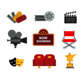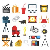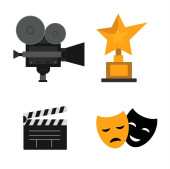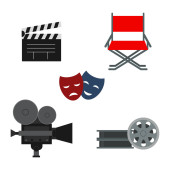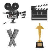 Kino Film, co telewizja Pokaż narzędzia sprzęt symbole ikony wektor zestaw ilustracji.