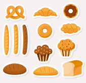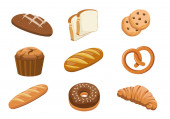 Piekarnia i cukiernia produktów Ikony Ustaw z różnych rodzajów pieczywa, słodkie bułeczki, babeczki, ciasta i ciastka dla piekarnia sklep lub jedzenie design