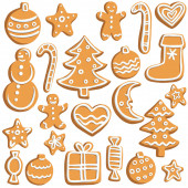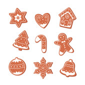 Placek wektor Słodkie desery jedzenie tradycyjne ciasta Boże Narodzenie kolacje i podwieczorki - drzewo, jelenia, cakeman, dzwon, dom, skarpety i Pingwin ilustracja