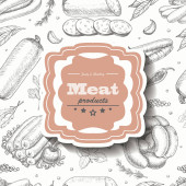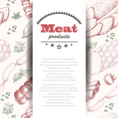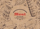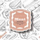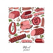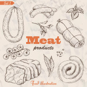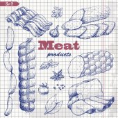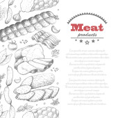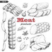 Wektor zestaw produktów mięso na białym tle w stylu szkicu