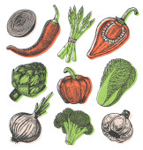 Zdjęcie "Zestaw warzyw wyciągnąć rękę. Ikony żywności. Ilustracja wektorowa edycji." może być wykorzystywane do celów osobistych i komercyjnych zgodnie z warunkami zakupionej licencji Royalty-free. Obraz jest dostępny do pobrania w jakości wysokiej rozdzielczości do 5760x3840.