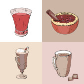 Wzór w okularach, grzane wino, herbata i inne napoje gorące zima. Świąteczny niekończące się tekstury