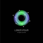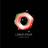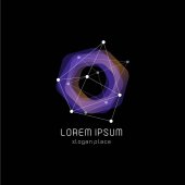 Abstrct cząsteczka kolorowy kształt na czarnym tle, wektor logo. Logotyp laboratorium technology genetyki.