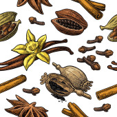 Zestaw przypraw, moździerz i Tłuczek... Vintage wektor wygrawerowanym ilustracja.