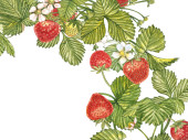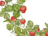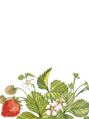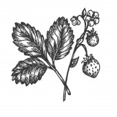 Truskawka wektor ilustracja. Grawerowane styl ilustracji. Naszkicowanych ręcznie rysowane berry, kwiaty, liście i gałęzie.