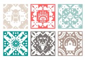 Zbiór w wektor realistyczne pudełeczka z zaokrąglonymi narożnikami, polka dot wzór i wstążki na kolorowe tło. Widok z góry.
