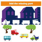 Gra logiczna. Visual gra edukacyjna dla dzieci. Zadanie: znaleźć brakujące części. Arkusz do przedszkola dzieci.