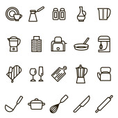 Zestaw nowoczesnych cienka linia ikony domu naczynia, gospodarstwa domowego i kuchenne naczynia