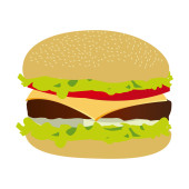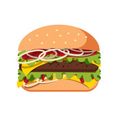 Zdjęcie "Hamburger z mięsem, serem i sałatka płaski. Ilustracja kreskówka." może być wykorzystywane do celów osobistych i komercyjnych zgodnie z warunkami zakupionej licencji Royalty-free. Obraz jest dostępny do pobrania w jakości wysokiej rozdzielczości do 5760x3840.