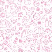 Bezszwowe tło, tekstura, tło, wzór, tapety z dzieci cartoon doodle zabawki. Gry edukacyjne dla dzieci ilustracja. Baby prysznicem. Zestaw ikon. Noworodka wektor zbiory. opieka nad dzieckiem