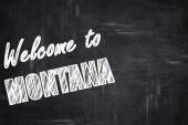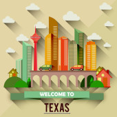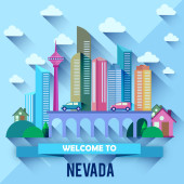 Ilustracja wektorowa kolorowe miasto nowoczesne wieżowce, samochody, most, rośliny, chmury i tekst Witamy w Montana