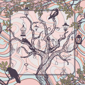 nieczysty retro tło z drzewo gałąź i ptaki sylwetki