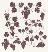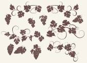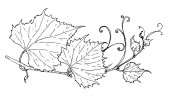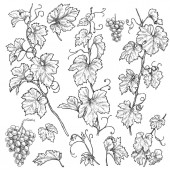 Kolekcja wektor winogrono liści na białym tle na białym tle. Wyciągnąć rękę Grawerowanie ilustracje w stylu.