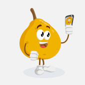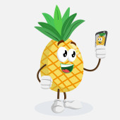 Banan Logo maskotka z selfie pozować z stylu płaski kształt logo lub marki maskotka