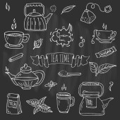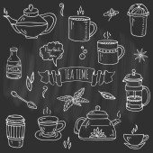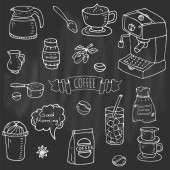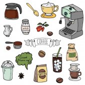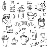 Ręcznie rysowane doodle Coffee time ikona zestaw kolekcja wektor ilustracja na białym tle napój symbole kreskówka różnych napojów elementu: kubek, kubek, espresso, americano, bezkofeinowa, mokka, irlandzki, kawy maszyny do produkcji