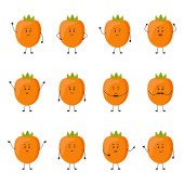 Pomarańcze - wektor kreskówka na białym tle emotikony