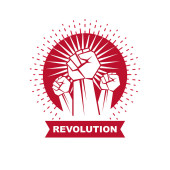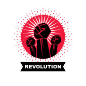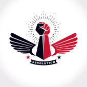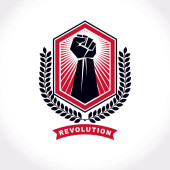 Godło wektorowe stworzone zaciśniętą pięścią umięśnionej osoby. Abstrakcyjny symbol wojny secesyjnej.