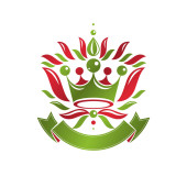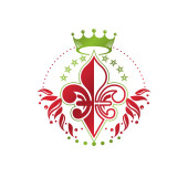 Heraldyczny herb dekoracyjny godło z kwiatów lilii i korony królewskiej, produkt ekologiczny. Izolowana ilustracja wektora, Fleur-De-Lis.