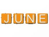 Słowa czerwca, napisany z 3d stojący kolorowe litery, lekko ugięte, na białej powierzchni renderowania - 3d ilustracja