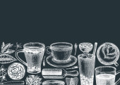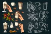 Wzór z liści, książki i dzwon. Grawerowanie wektor