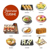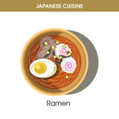 Pożywne Nabe egzotycznych na talerzu od kuchni japońskiej na białym tle ilustracji wektorowych. Orientalne danie z shiitake i konoko grzyby, marchew plastry, smaczny kamaboko, świeżej zieleni i ser tofu.